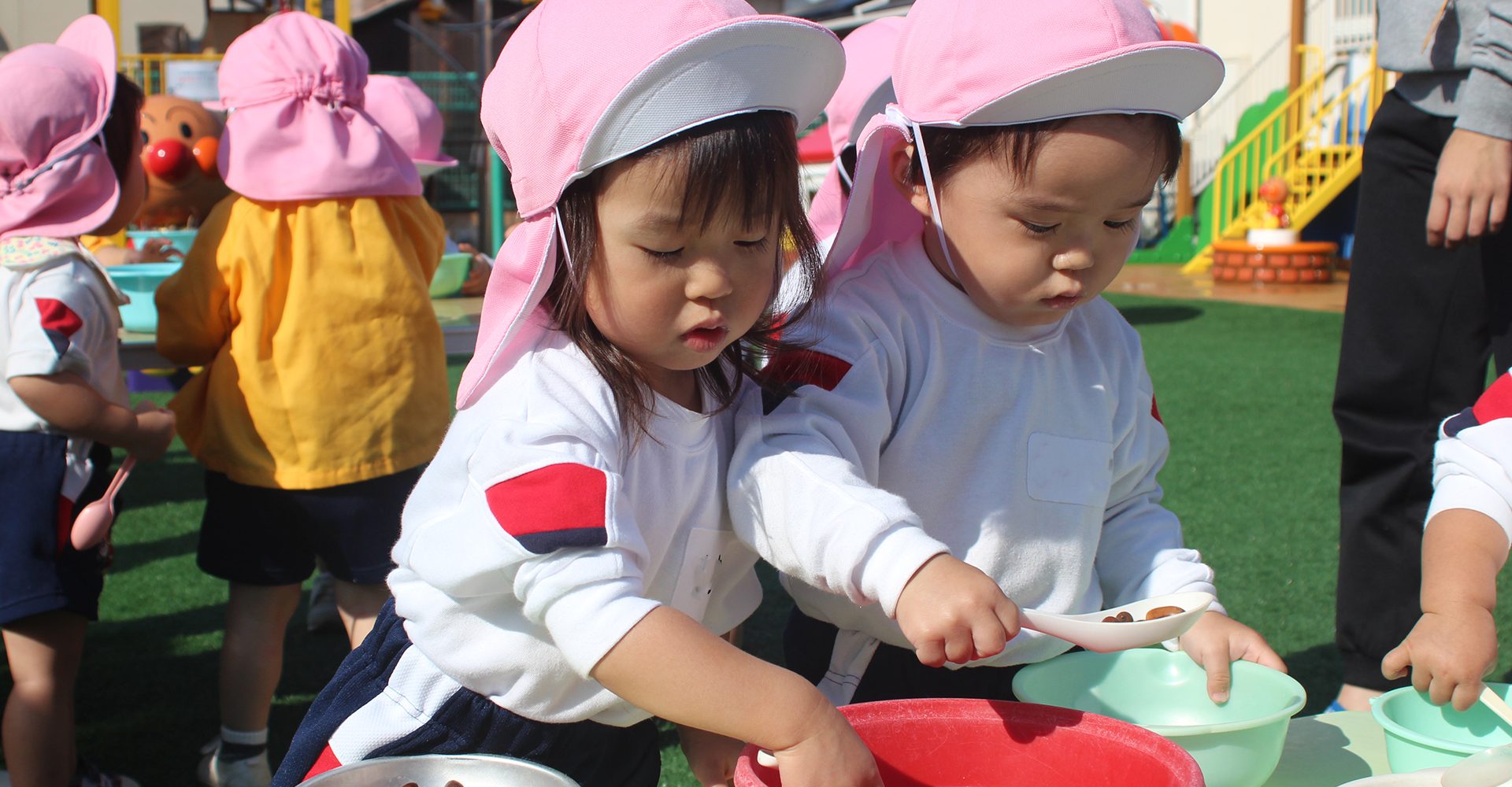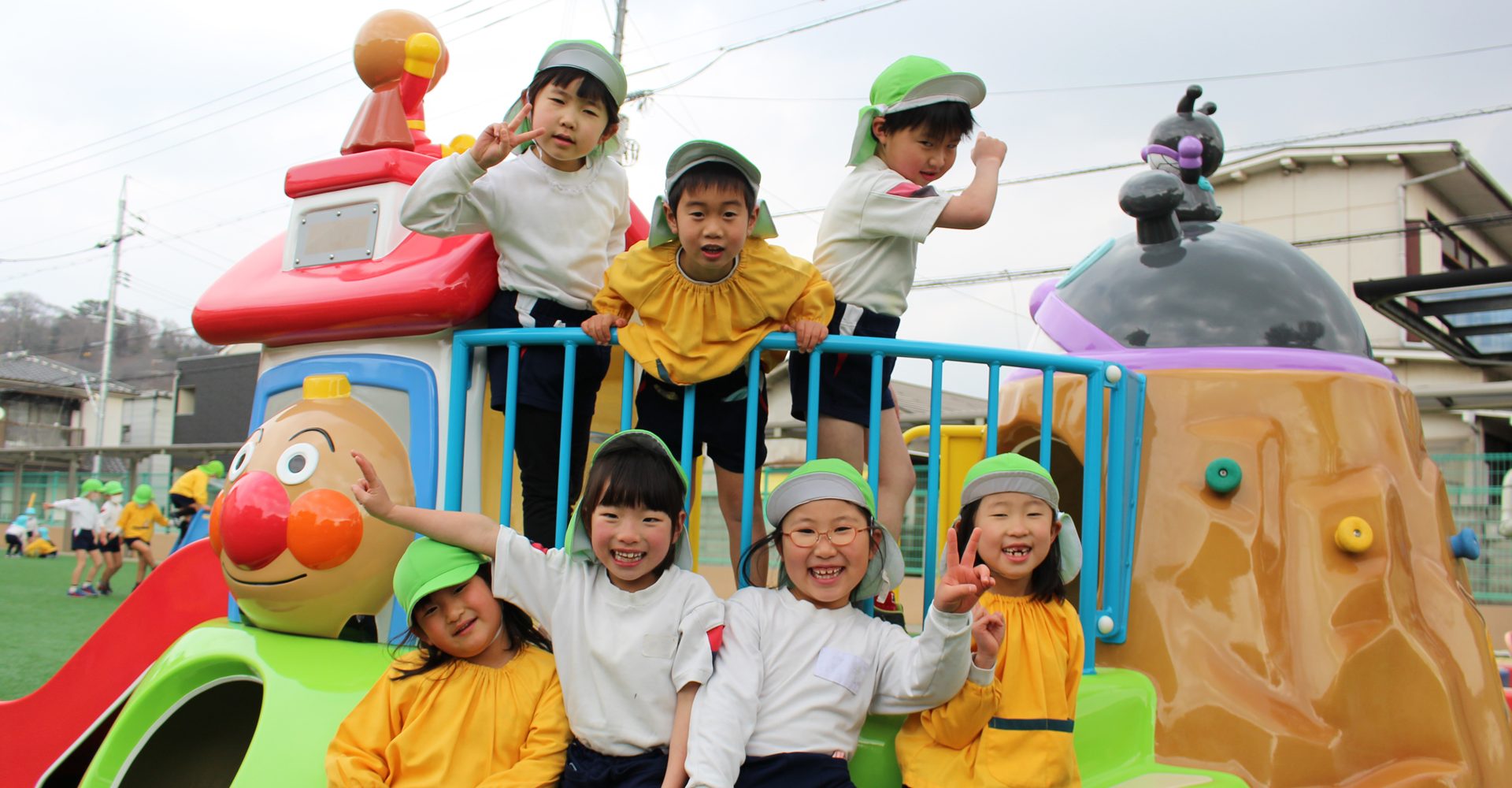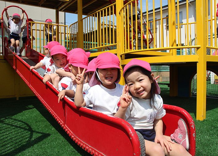 園庭には子どもたちも先生も大好きなアンパンの遊具がたくさんあります。